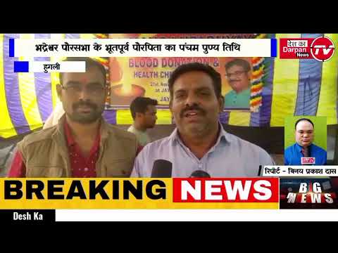 हुगली-भद्रेश्वर शहर तृणमूल कांग्रेस के भूतपूर्व सभापति और भद्रेश्वर पौरसभा के भूतपूर्व पौरपिता श्रद्धेय मनोज उपाध्याय के पंचम पुण्य तिथि के पावन अवसर पर भद्रेश्वर जी0 टी0 रोड पर स्थित उनके स्मारक प्रतिमा के सामने तृणमूल कांग्रेस के कार्यकर्ता एकत्रित होकर उनके स्मारक प्रतिमा पर माल्यार्पण श्रद्धा सुमन अर्पित किया। साथ साथ जय भारत संघ के प्रांगण में उनके स्मृति में एक रक्त दान शिविर कैम्प और स्वास्थ्य जांच परीक्षण कार्यक्रम का आयोजन किया गया। उपस्थित रहे भदेश्वर पौरसभा चेयरमैन प्रलय चक्रवर्ती, पूर्व सी आई सी मास्टर एस डी राय जी, सुनील उपाध्याय, चिंटू दुबे, राजकुमार साव, विजय भगत, अमीत माल, संजय मिश्रा, कर्मी एवं नागरिक वृन्द। चेयरमैन प्रलय चक्रवर्ती ने कहा कि भद्रेश्वर पौरसभा मे भी सन्ध्या 4 बजे शोक सभा का आयोजन किया गया है, सन्ध्या 6.00 बजे उनके स्मारक प्रतिमा के पास भद्रेश्वर के समस्त नागरिक उपस्थित होकर मोमबत्ती जलाकर उसकी आत्मा शांति की कामना करेंगे।