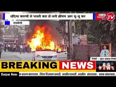 उत्तर प्रदेश रायबरेली,संदिग्ध कारणों से चलती कार में लगी भींषण आग धू-धू कर जली मचा हड़कंप